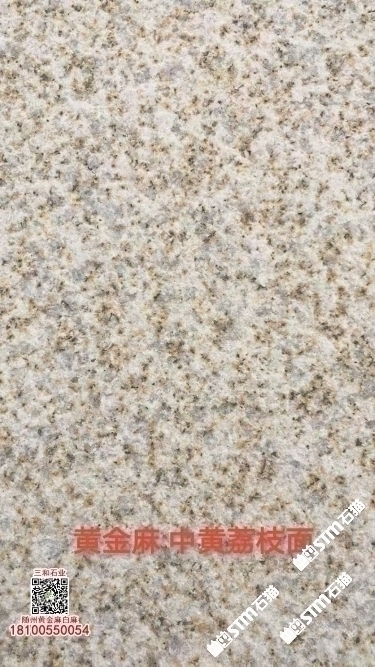 發(fā)布信息: 隨州黃金麻石材-隨州白麻花崗巖-光面黃金麻-燒面黃金麻-荔枝面黃金麻-光面白麻-燒面白麻-荔枝面白麻 隨縣三和石業(yè) 劉經(jīng)理 18100550054(微信同號(hào))專業(yè)隨州黃金麻/白麻供應(yīng)商廠家,工廠位于隨州石材工業(yè)園;專注于別墅幕墻干掛工程及園林地鋪石材加工,實(shí)力工廠,廠礦一體;主營(yíng):隨州黃金麻、隨州白麻、湖北黃金麻、湖北白麻、黃銹石、白銹石、黃色麻石、白色麻石、光面黃金麻、燒面黃金麻、荔枝面黃金麻等花崗巖;同等品質(zhì)基地批發(fā)價(jià)格更低,隨縣三和石業(yè)有限公司歡迎你來電溝通洽談業(yè)務(wù)!