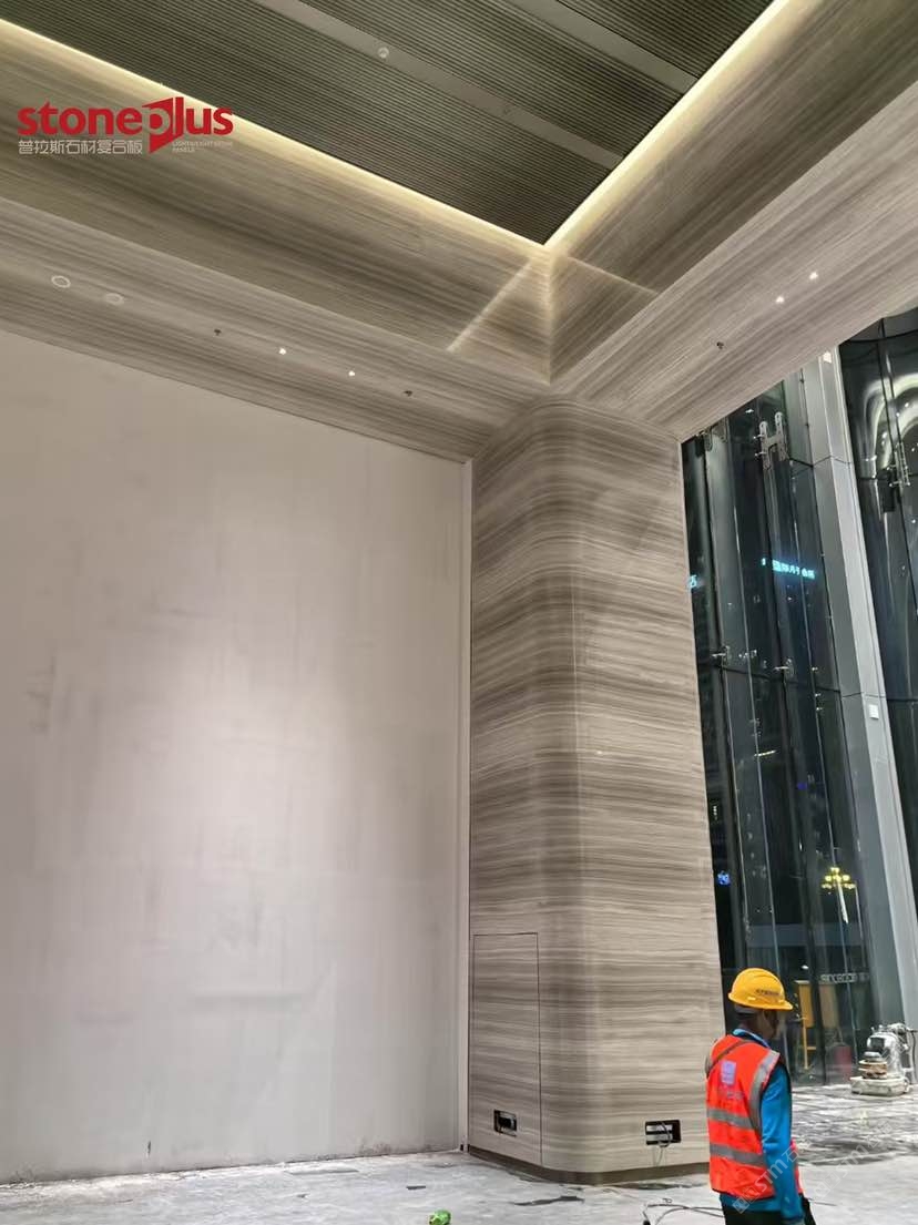 發(fā)布信息: 澳門中心位于廣州市黃埔區(qū)魚(yú)珠片區(qū),項(xiàng)目定位為商業(yè)商務(wù)綜合體打造以港澳特色為主的、有國(guó)際影響力的科技金融和數(shù)字經(jīng)濟(jì)總部基地,并大力引入澳門文化和商業(yè)業(yè)態(tài),打造充滿澳門風(fēng)情的文創(chuàng)藝術(shù)街區(qū),實(shí)現(xiàn)科技金融產(chǎn)業(yè)一體化、粵澳葡三地合作一體化。 其中大樓室內(nèi)墻面采用白木紋復(fù)合鋁蜂窩,預(yù)埋螺栓打孔后再進(jìn)行復(fù)合,到現(xiàn)場(chǎng)進(jìn)行干掛安裝;包柱采用白木紋復(fù)合鋁蜂窩平板拼弧工藝,對(duì)手加工工藝要求較高,我們普拉斯加工對(duì)品質(zhì)的追求與現(xiàn)場(chǎng)的安裝效果相得益彰。
