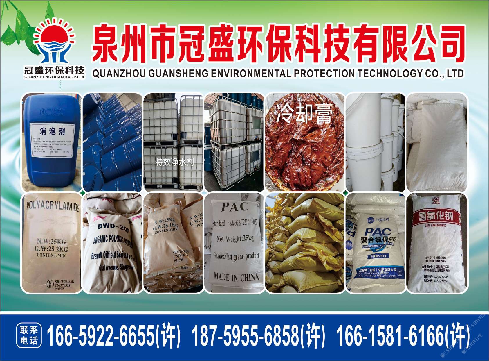 發(fā)布信息: 冠盛環(huán)??萍?6659226655 主營產(chǎn)品:凈水劑,冷卻劑,冷卻粉,大理石人造石專用凈水劑,沉淀粉,消泡劑,消毒凈水劑,防銹凈水劑,除銹劑,除臭劑,聚丙烯酰胺,聚合氯化鋁,鹵精,洗沙專用凈水劑,壓濾機(jī)專用凈水劑,陶瓷廠專用凈水劑(黃藥 白藥)等所有水處理環(huán)保材料……