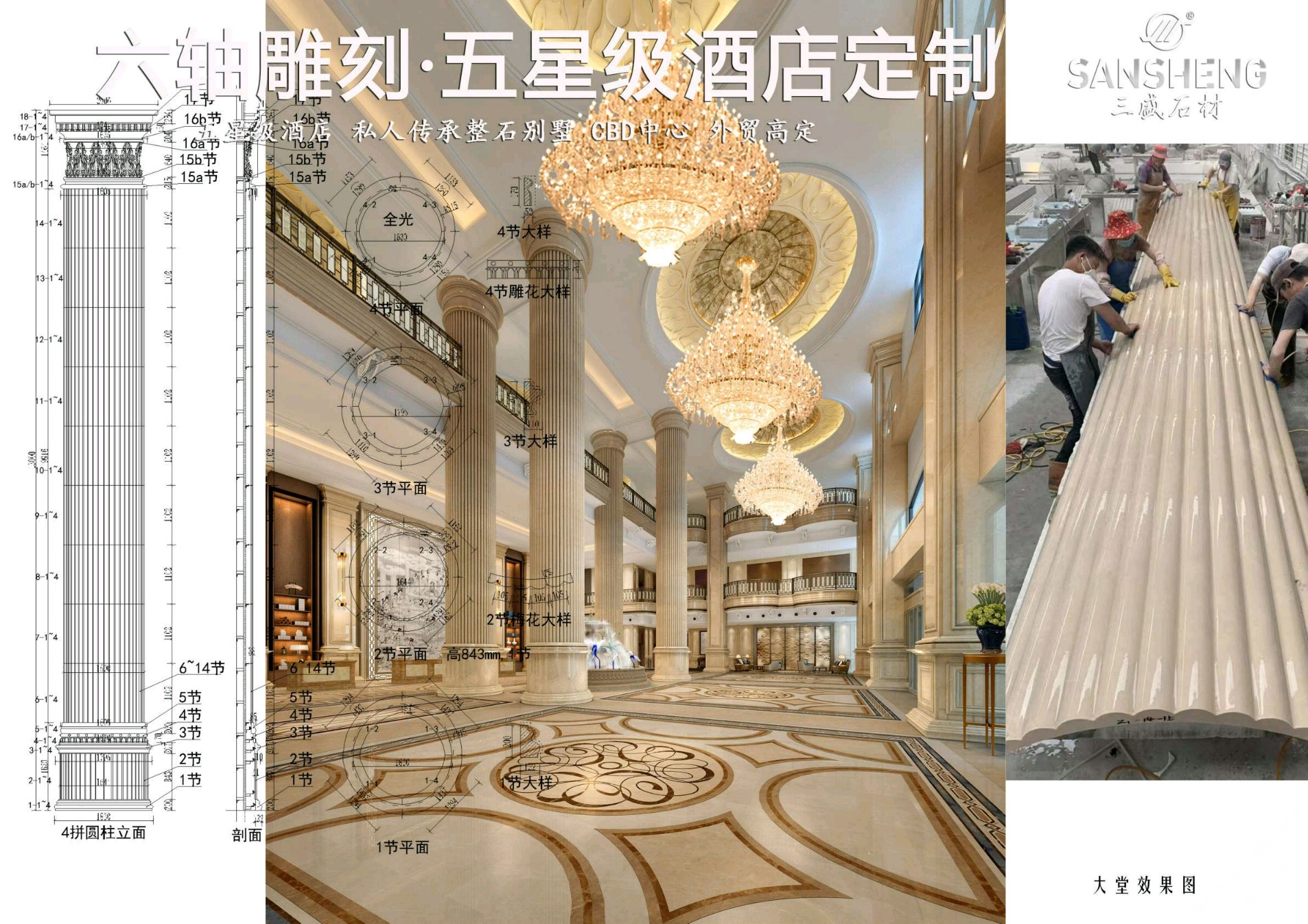 發(fā)布信息: 聯(lián)系:13489555666 黃 三盛集團丨三盛圓柱主營:魚肚白、中花白、雅士白、大花白、卡拉拉白、雪花白、南斯拉夫白、細(xì)花白、爵士白品種的圓柱、弧形板、羅馬柱、雕刻、線條、旋轉(zhuǎn)樓梯、吧臺水景沙盤、整棟傳承大厝、別墅,來料智能掃描加工。